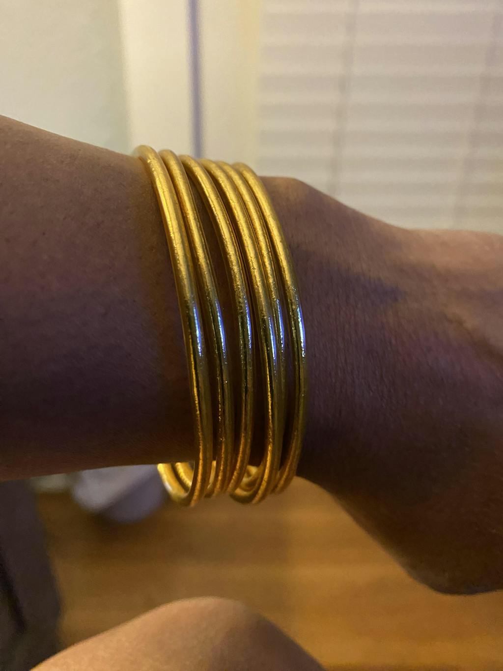 ✨ Since each bangle is unique and flexible slight changes in shade, shape, and size are totally normal and enhance their loveliness when worn together in a stack.