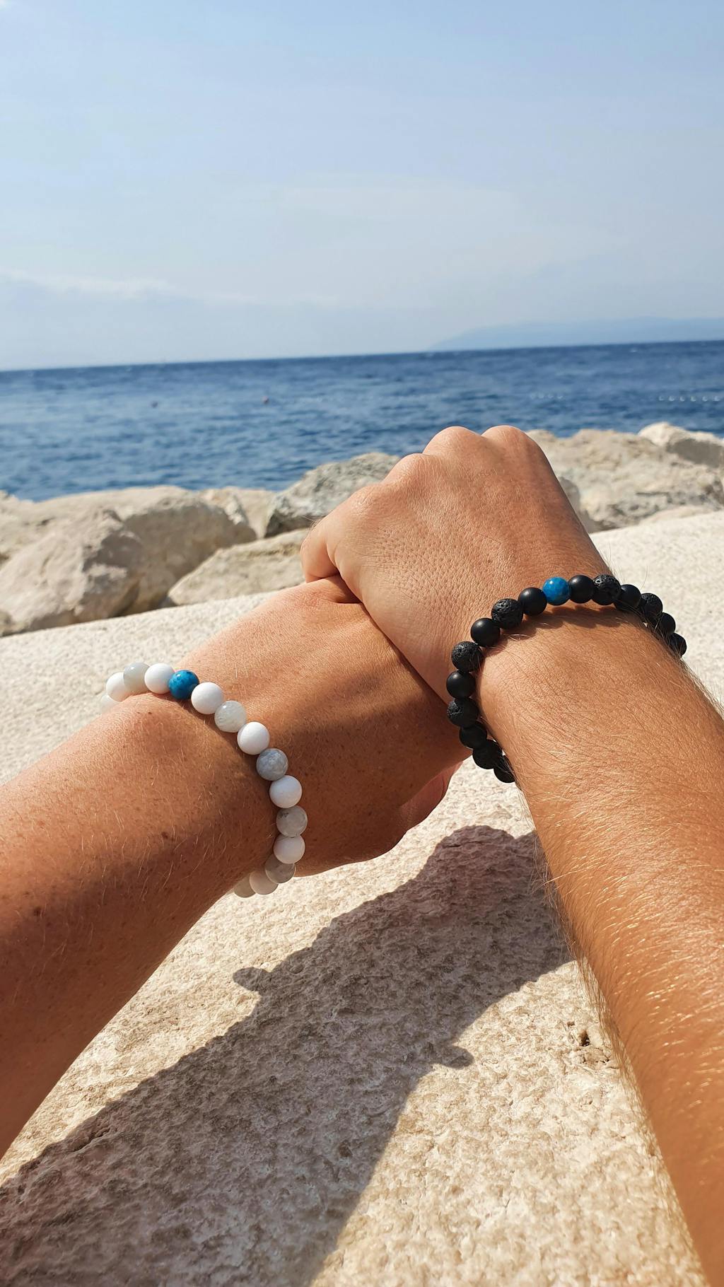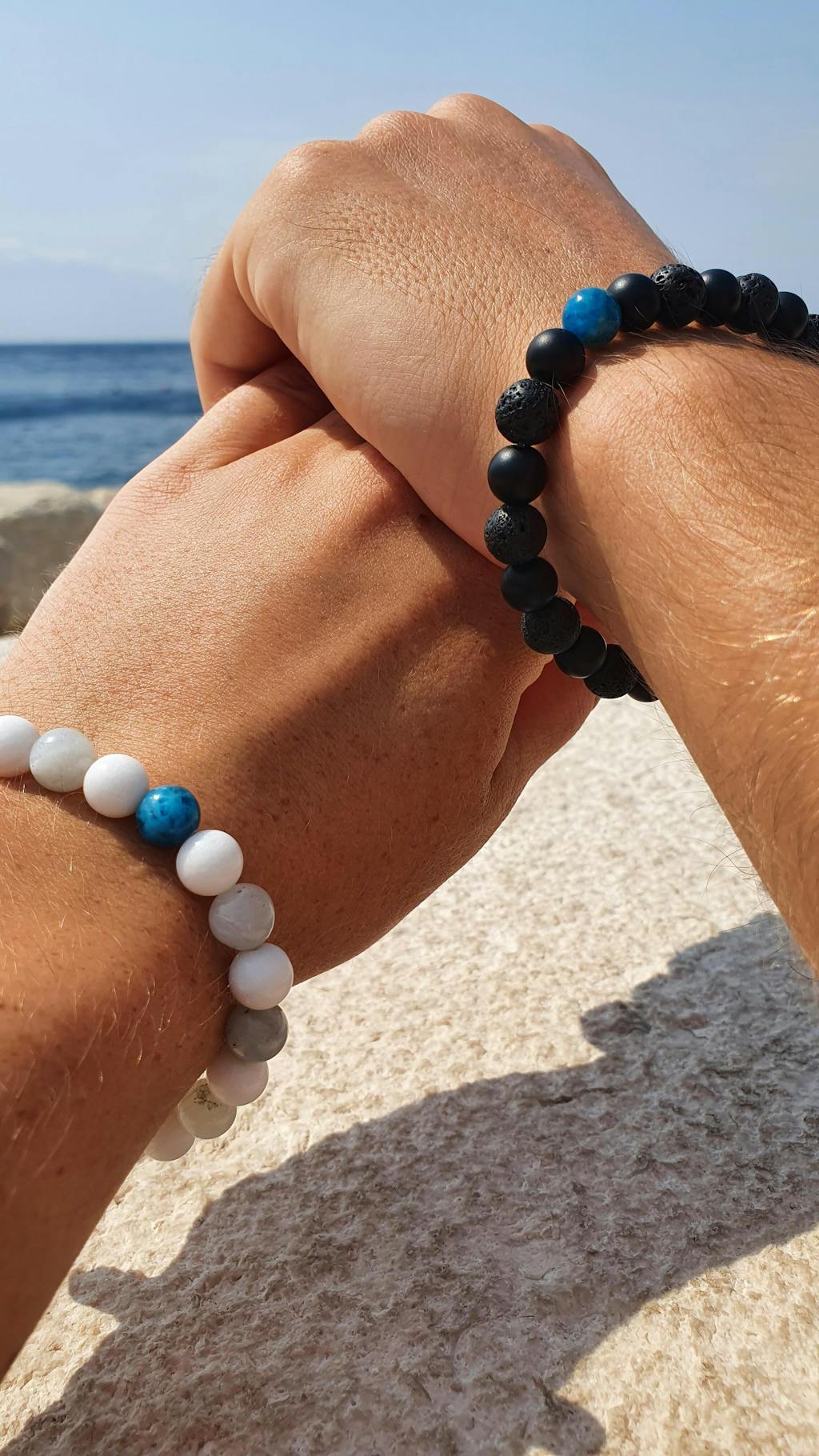 Infinity Gemstone Bracelet Handemade by Manipura with Black Lava Mat Onyx and Apatite 10mm