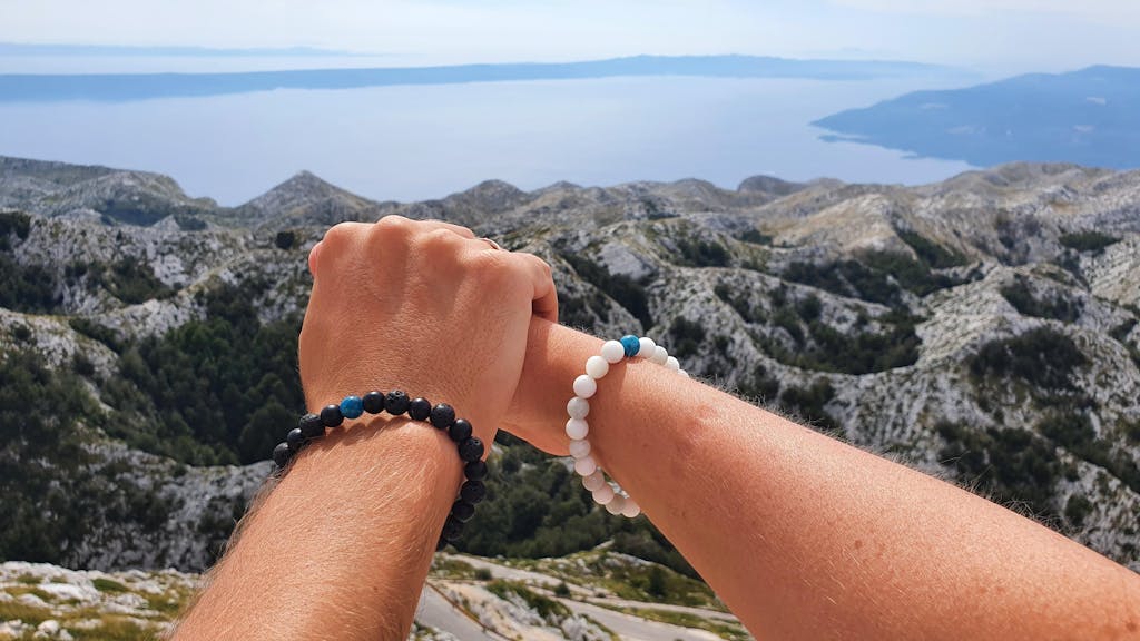 This wonderful Gemstone Bracelet was originally made for men but is very much loved by women as well. The feminine version of it uses an interchange of Mat and Shiny Onyx instead of the more rugged Lava stone.