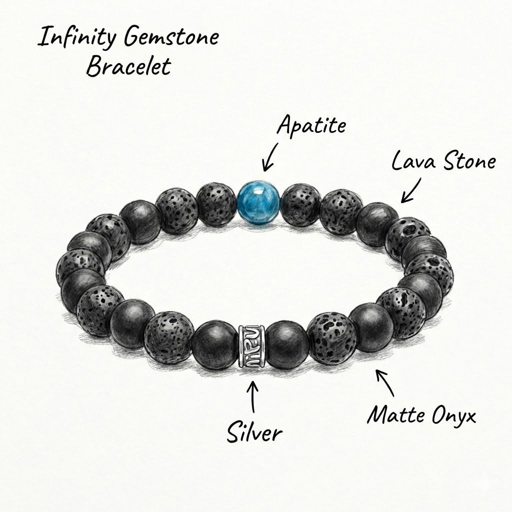Infinity Gemstone Bracelet with Onyx, Lava & Apatite beads