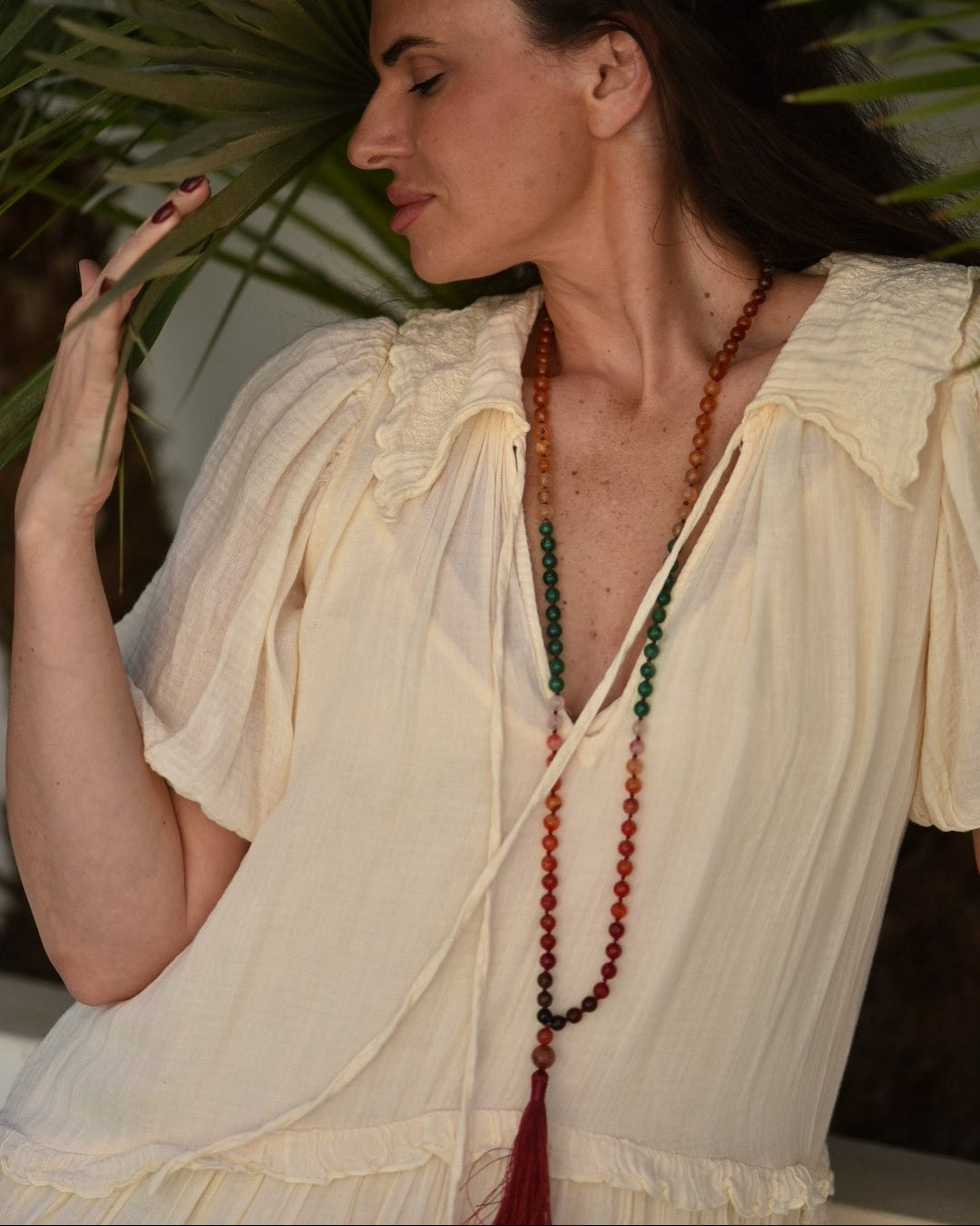 Adopte el vibrante Mala de empoderamiento, una explosión dinámica de positividad que presentamos con orgullo como nuestra obra maestra de terapia del color. Imagínese cuentas de ágata girando con un brillo sin complejos, pasando de verdes exuberantes a rojos intensos y de púrpuras majestuosos a naranjas cálidos: una sinfonía de empoderamiento que irradia optimismo en cada tono.